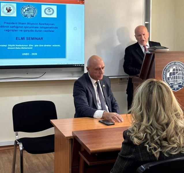 UNEC-in Ümumi fənlərin tədrisinin təşkili departamentində (ÜFTTD) 21 fevral – Beynəlxalq Ana Dili Günü münasibətilə “Prezident İlham Əliyevin Azərbaycan dilinin saflığının qorunması istiqamətində çağırışları və qarşıda duran vəzifələr” mövzusunda seminar keçirilib.
