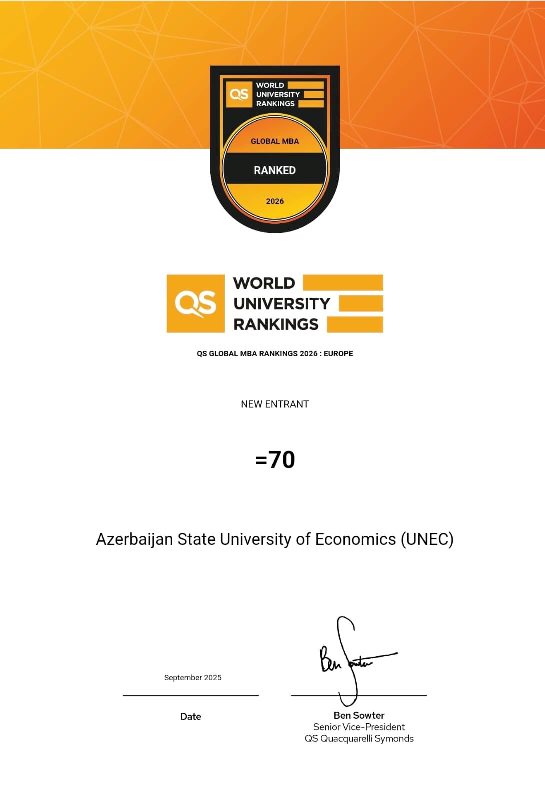 UNEC-in MBA proqramının QS reytinqinə daxil olaraq dünya universitetləri ilə bir sırada yer alması onun beynəlxalq arenada güclənən mövqeyinin göstəricisi, həyata keçirilmiş dəyişikliklərin real nəticəsidir.