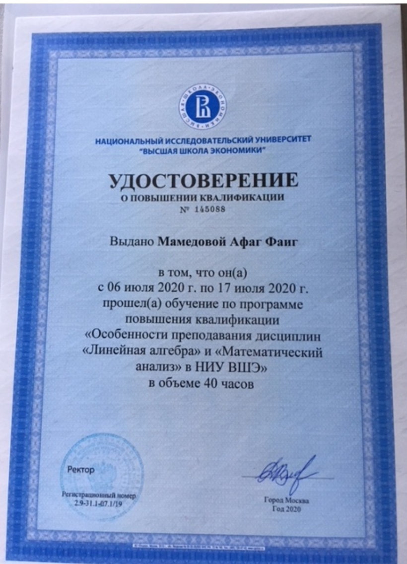 “Математический анализ 1” adlı dərs vəsaitinin müəllifidir.