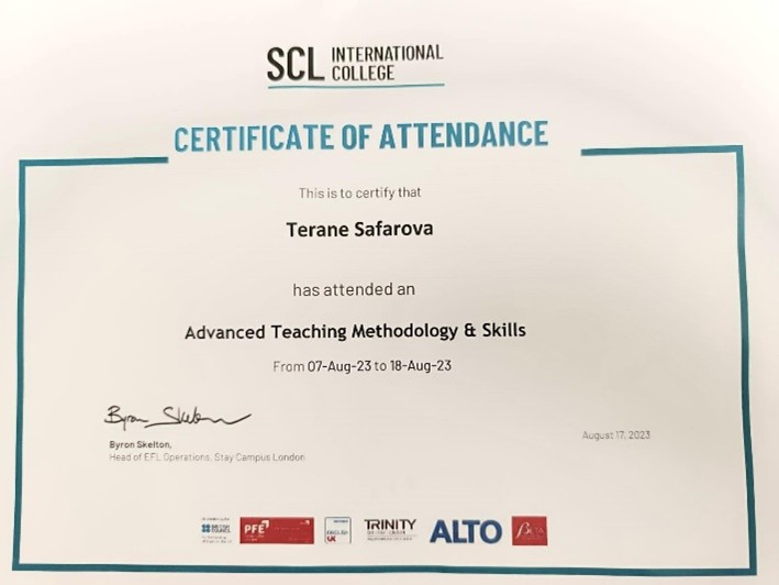 2023-cü ildə UNEC-də təşkil olunan yeni fənn üzrə təlim proqramında 8 fənn üzrə sertifikatın sahibi olmuşdur.